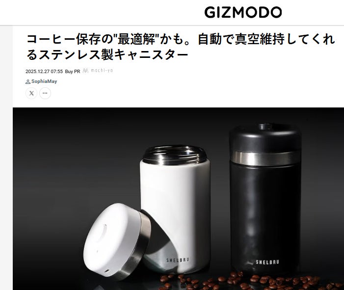 12月27日、Gizmodoで「SHELBRU Canister Stainless」を紹介して頂きました。