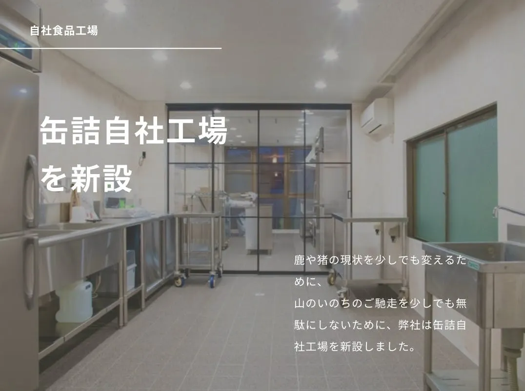 2022年には、ジビエ専用の加工場、急速冷凍機、自社缶詰工場も整備。 山の恵みを安全・安心・おいしく全国へ届ける体制を整えました。