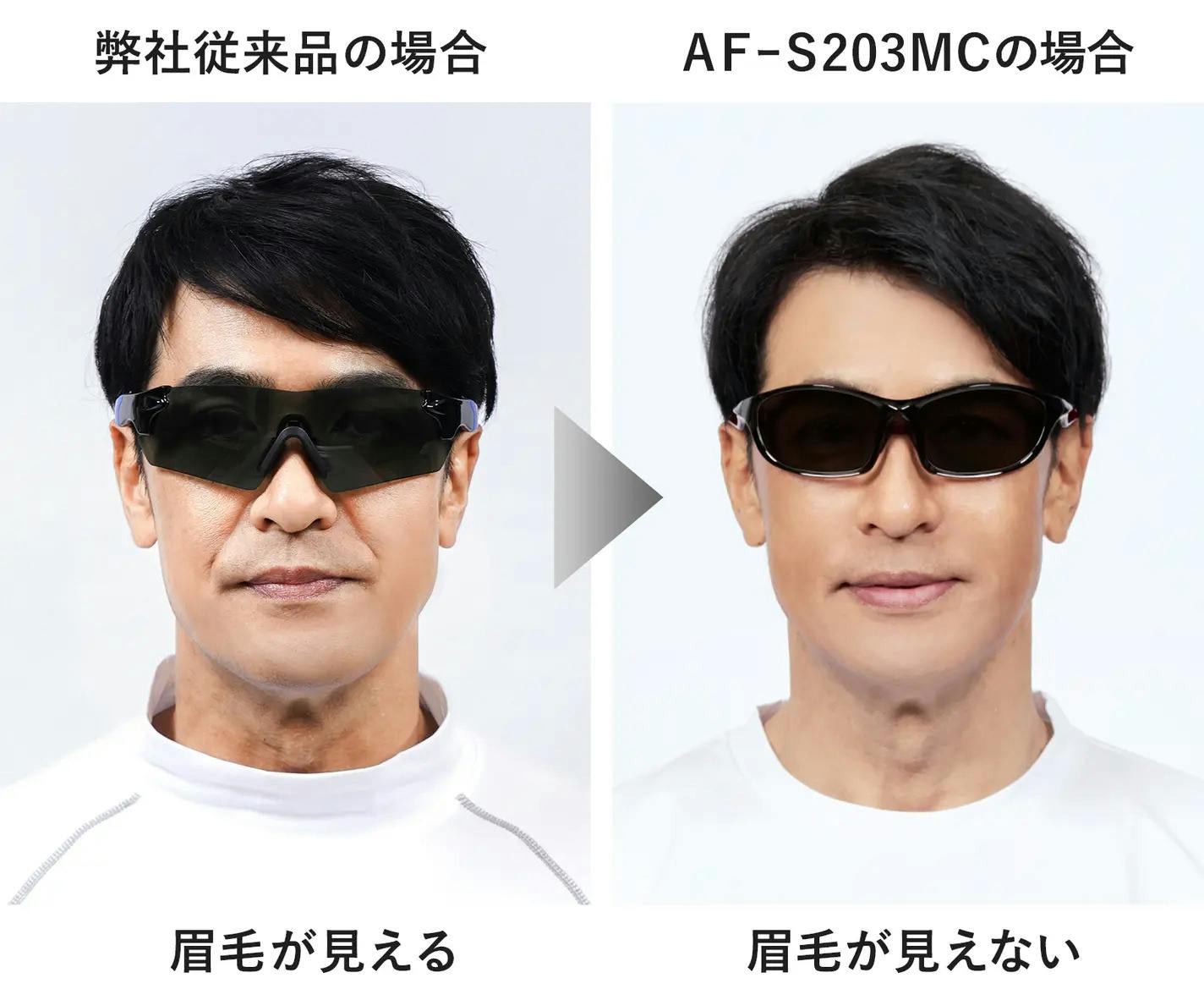 (※商品テンプルの裏側にはAF-S203とされています。本プロジェクトでは特殊レンズ採用のため、品番 呼称を変えています)