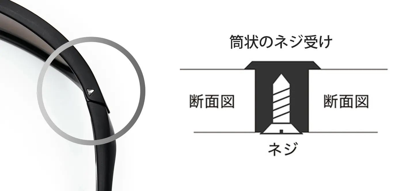 鼻の形状に合わせて、ノーズパッドの開き具合や角度などを調節することで、ご自身にあわせた快適なかけ心地が得られます。また独自のノーズパッド取り付け方法で、ネジ頭が視界に入らずスマートなデザインとなっています。