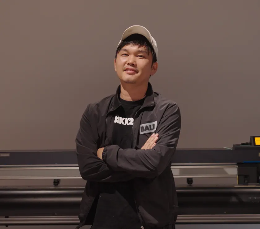 看板、Tシャツ、名刺にチラシ、広告物ならなんでも手掛けてしまうやり手の社長です。