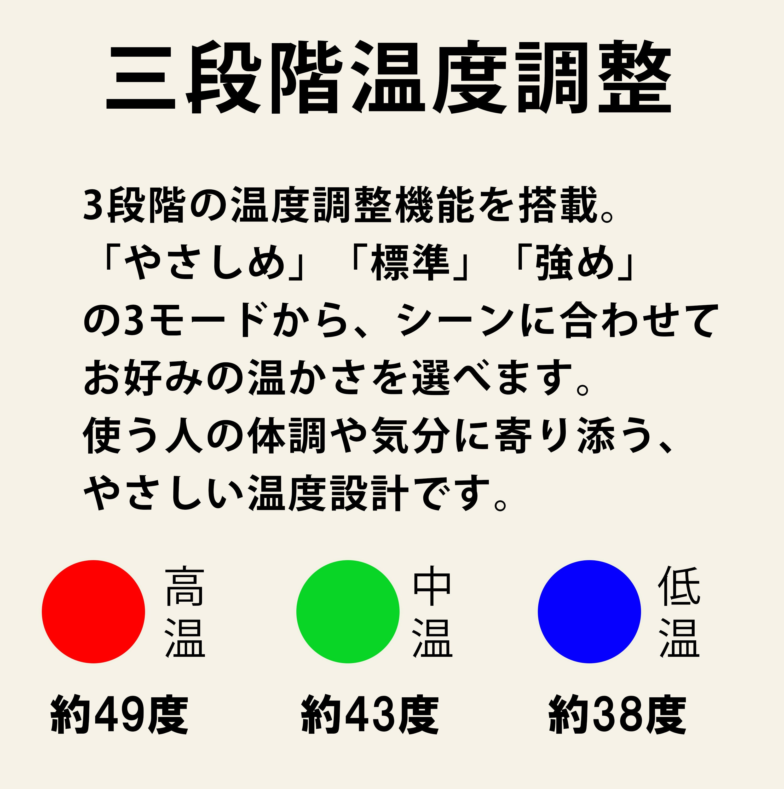 3段階の温度調整で、ちょうどいいぬくもりを。