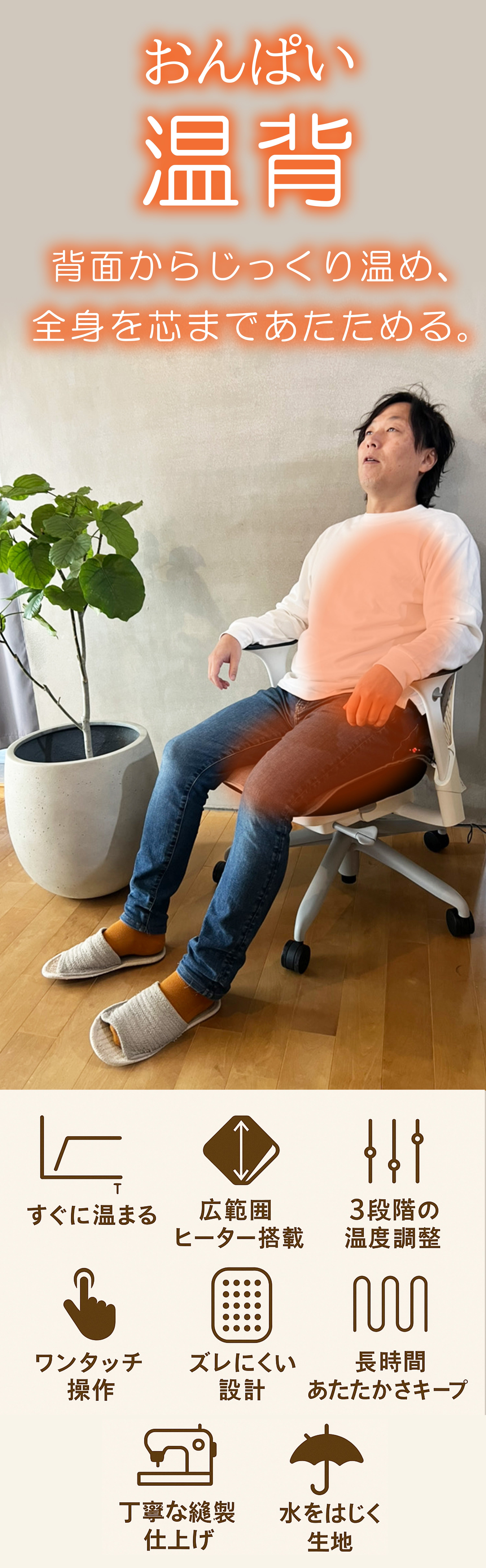 「温背(おんぱい)」はUSB電源対応で、使う場所を選びません。