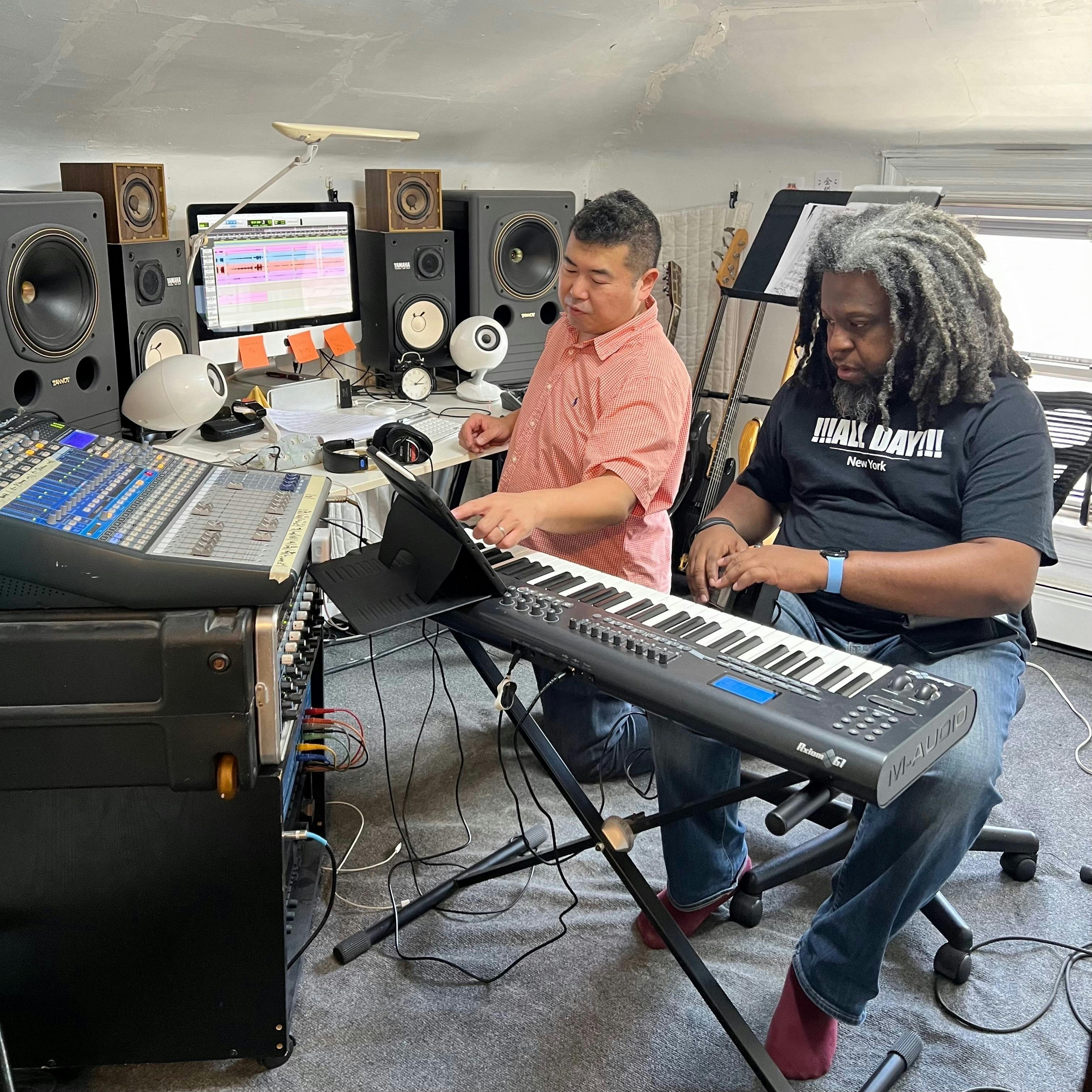 プロデューサー兼ベーシストの Nori Naraoka さんのお声がけで、ドラムの Darrian Douglas、ピアノの Willerm Delisfort という、ニューヨークの第一線で活躍する2人がスタジオに駆けつけてくれました。