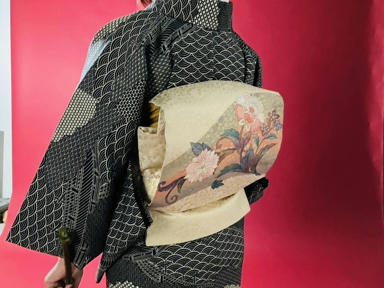 私はよく着物でジャズを歌います。着物は、帯との組み合わせでいくつもの表情を持ちます。