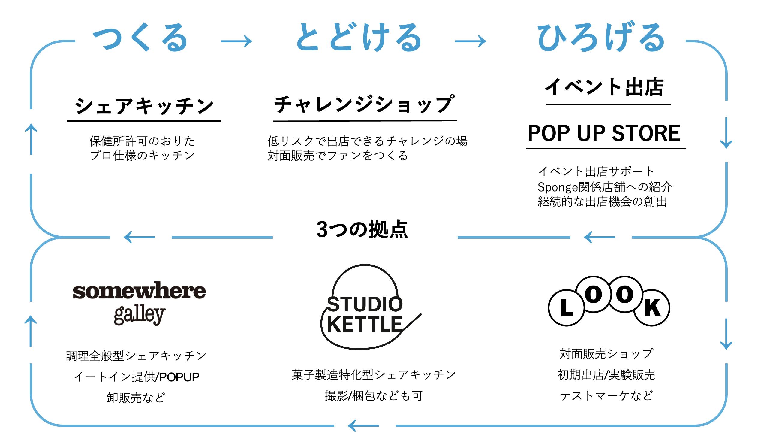 つくる場としてのシェアキッチン、伝える場、届ける場として街なかの小さな販売スポットをつくることで、