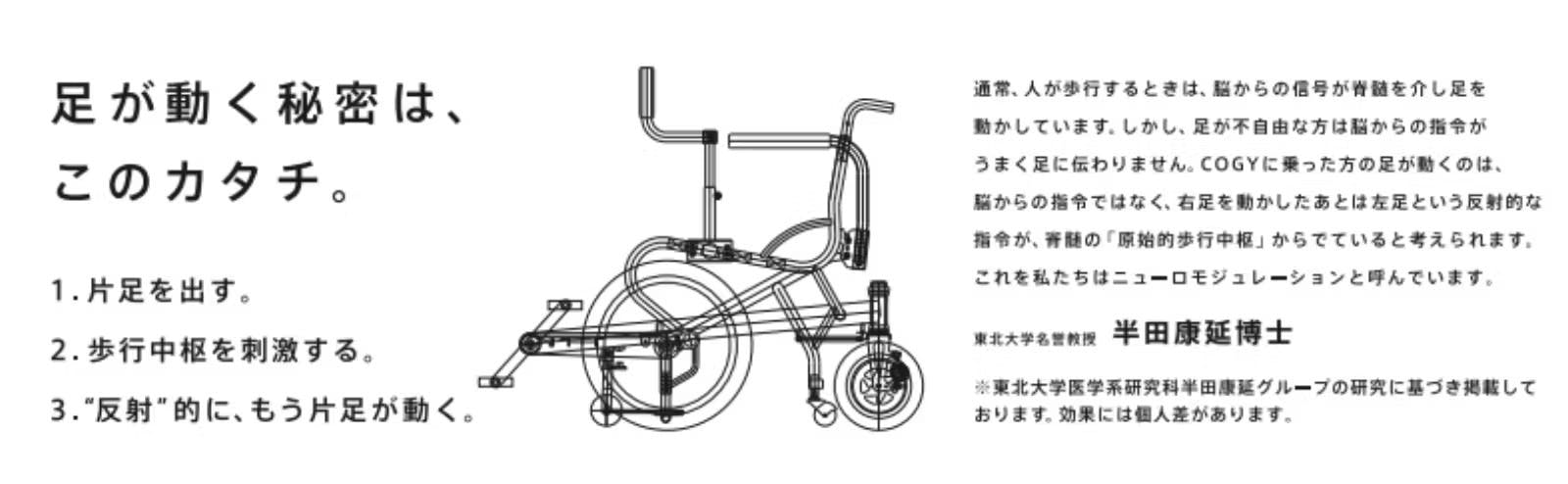 “もう歩けない”を“まだ歩けるかもしれない”に変える、あきらめない車椅子。それがCOGYⅡです。