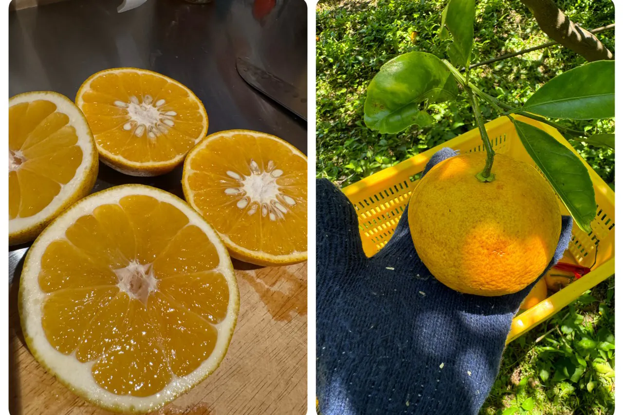 私、佐伯恭介がこだわりを持って栽培した、強い甘みと適度な酸味がある自慢のサムライゴールドです。薬剤不使用なので見た目は非常に悪いです。
