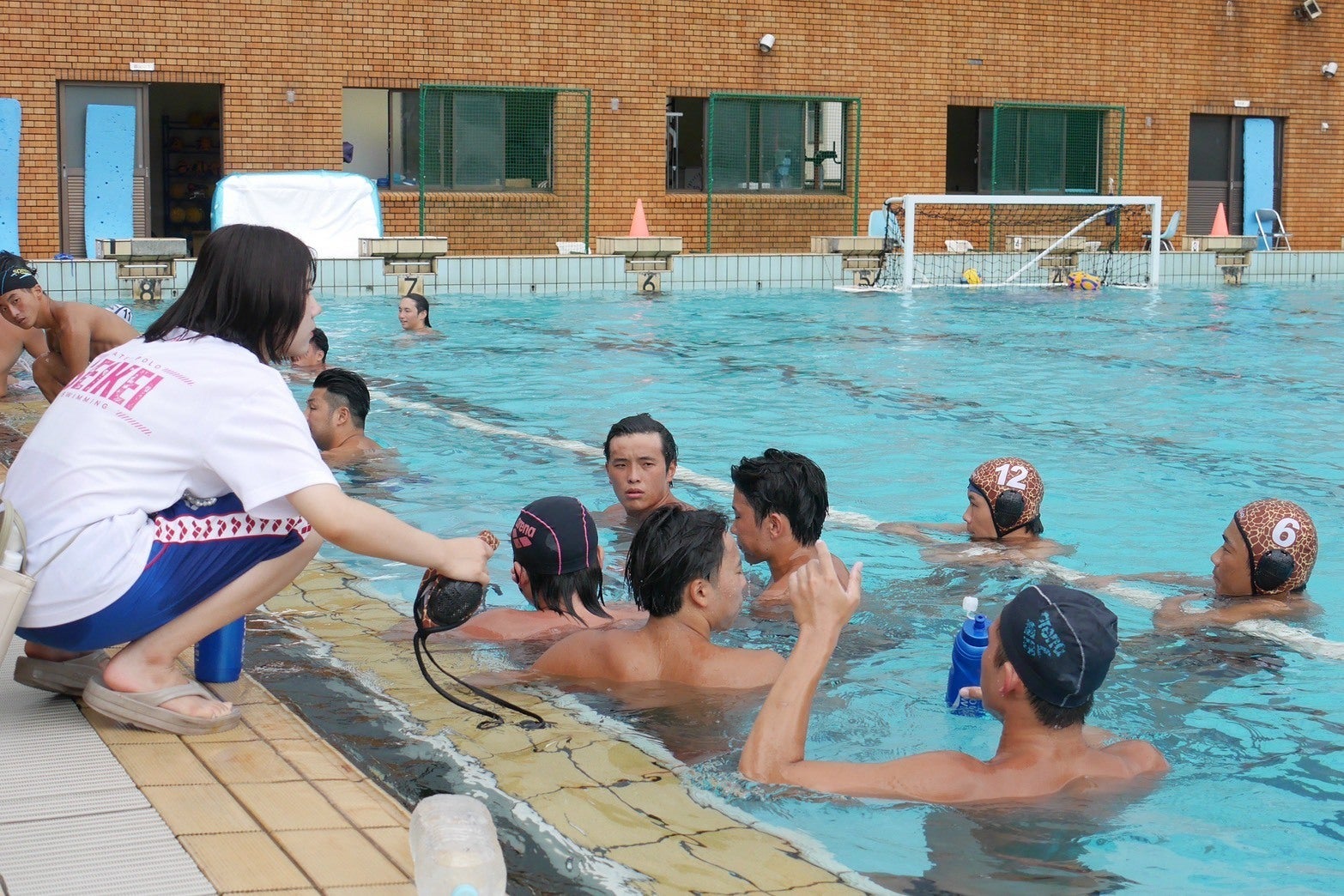 近年、本部志望者は少しずつ増加傾向にあり、例年、地方出身者も含まれています。年間を通じて高校生に向けた広報活動を継続しているからこそ、スポーツ推薦のない本部でも毎年安定した戦力を確保できているといえます。実際、2024年度日本学生選手権水泳競技大会〈水球競技〉でベスト8を達成したメンバーの中にも地方出身者が多く含まれており、今後も遠征などの取り組みを通して、継続的に高い競技力を維持できるチームづくりへとつながっていくと確信しています。