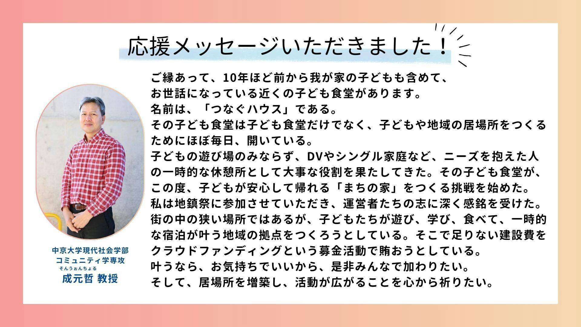 今ある「つなぐハウス」は地域とともに育ててきた大切な居場所です。毎日のように集まる子どもたち。そっと顔を出してくれる大人たちが、変わらず安心して通える場所であり続けてほしい。