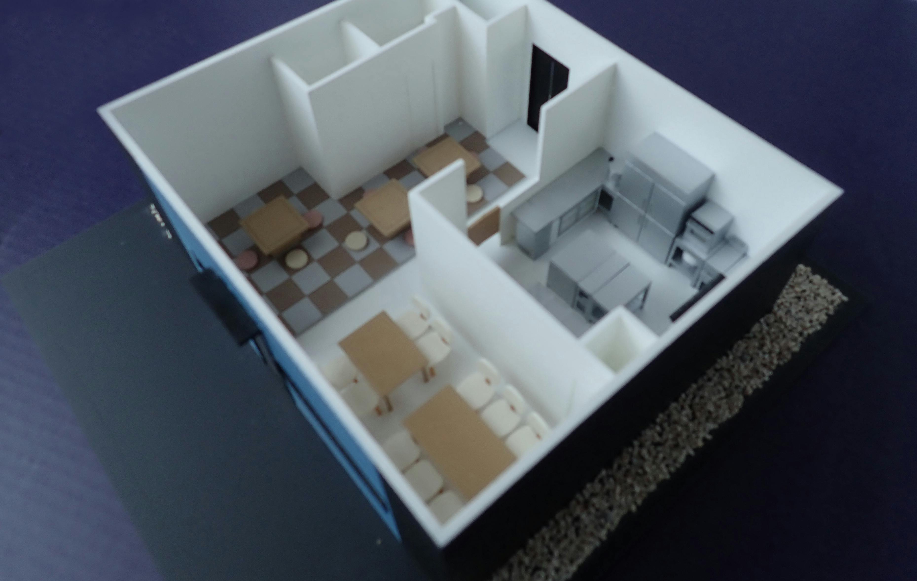 遊び・学び・食事・相談・一時宿泊を一体で支える居場所:つなぐカサ模型