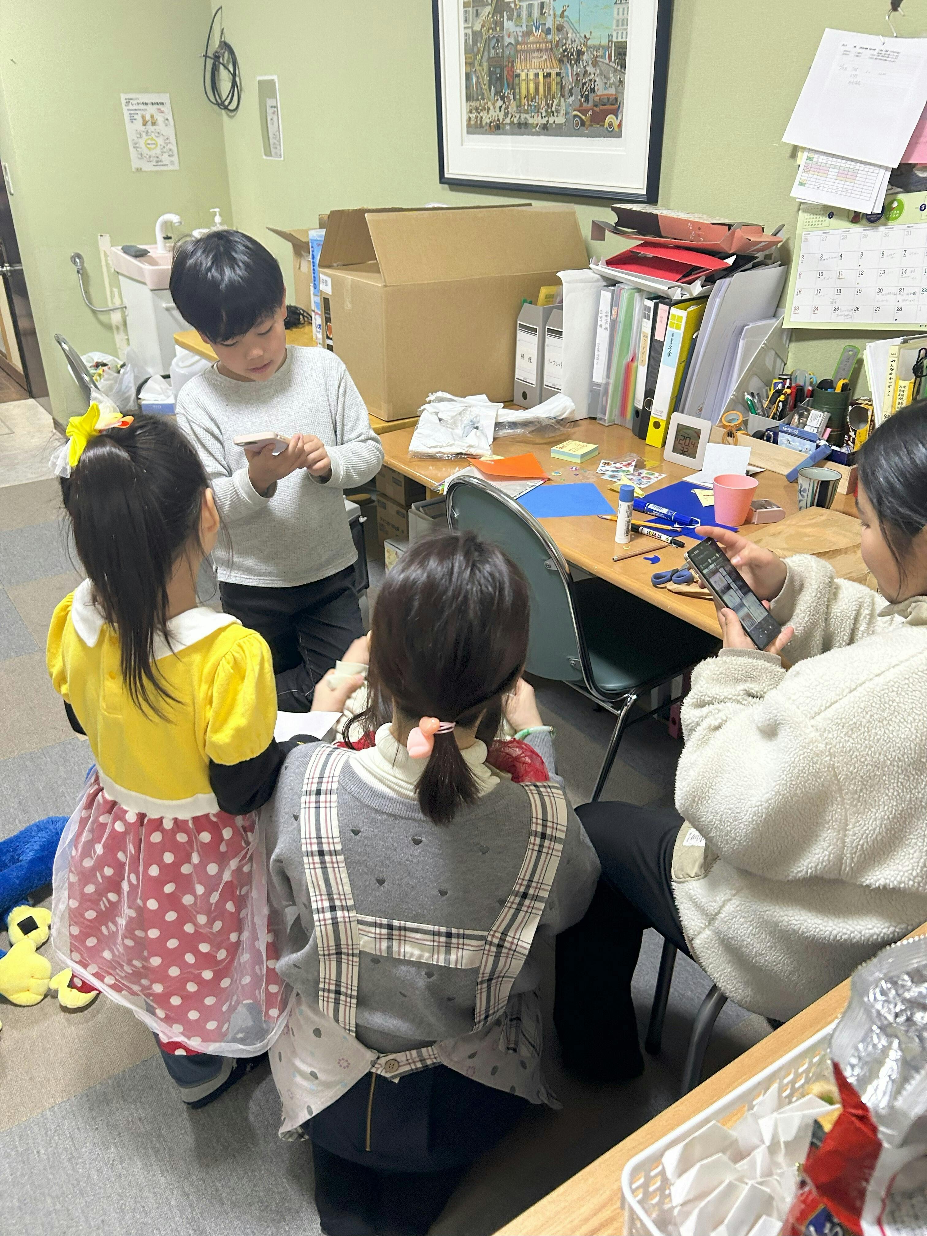 利用者だけでなく、支援者、企業、学生、ボランティアなど・・・さまざまな人が行き交う中、事務局スタッフの足元では、子どもたちがゲームをしたり、おしゃべりをしたり。