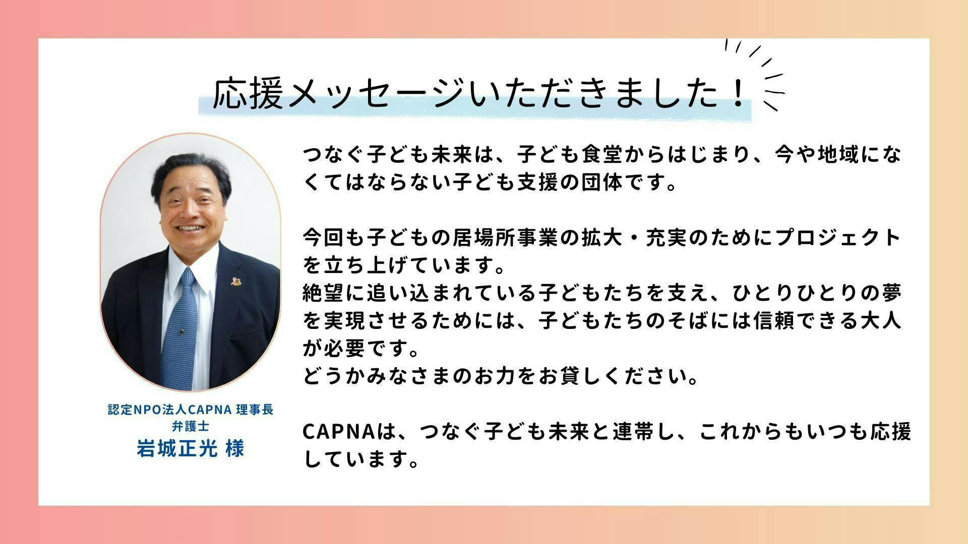 ①認定NPO法人CAPNA 理事長・弁護士 岩城正光 様