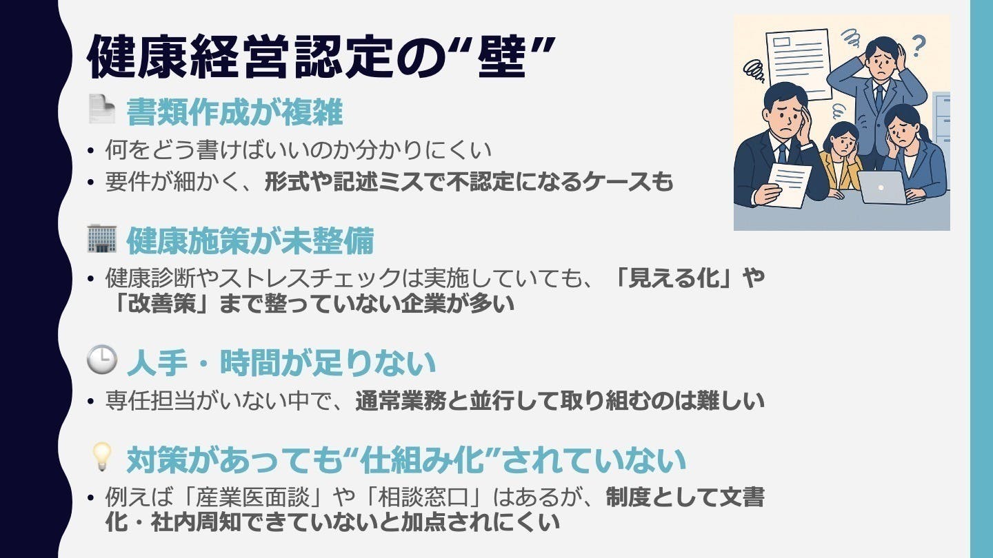 🧑⚕️ 健康経営認定の“壁”を乗り越えるための伴走サポート