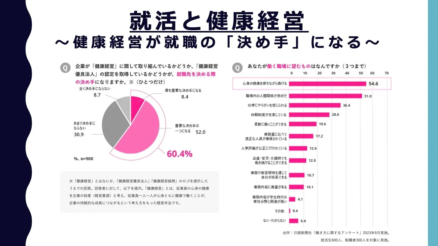 ✅ 採用難・人材定着の課題が深刻に → 健康経営で“働きたい職場”をアピール