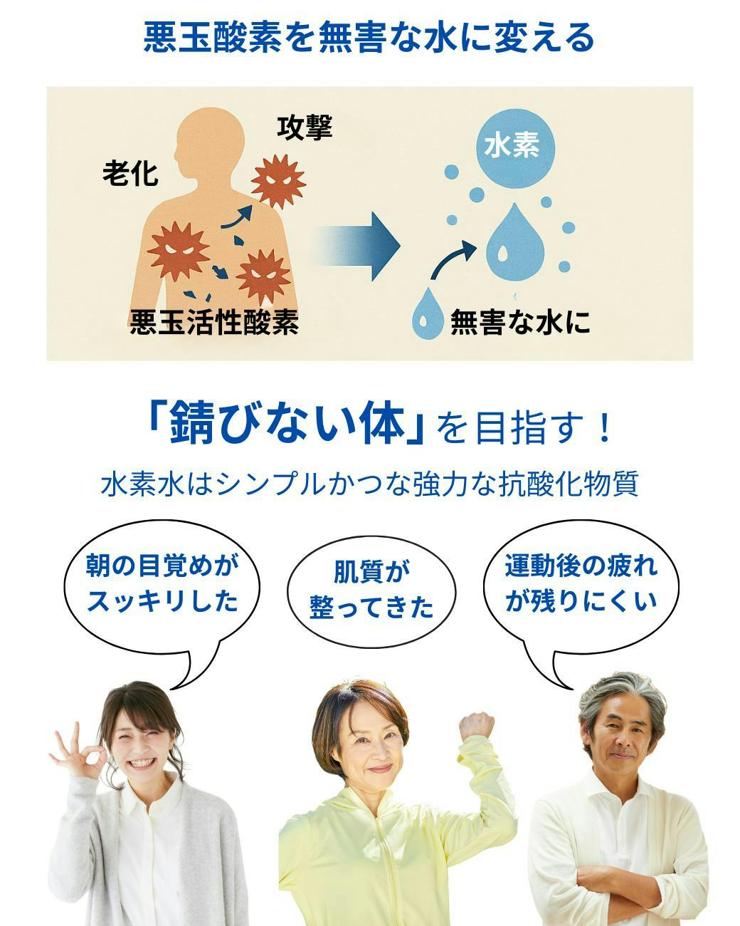 実際に、日常的に水素水を取り入れている方からは「朝の目覚めがスッキリした」「肌が整ってきた」「運動後の疲れが残りにくい」といった体感の声も多く寄せられています。