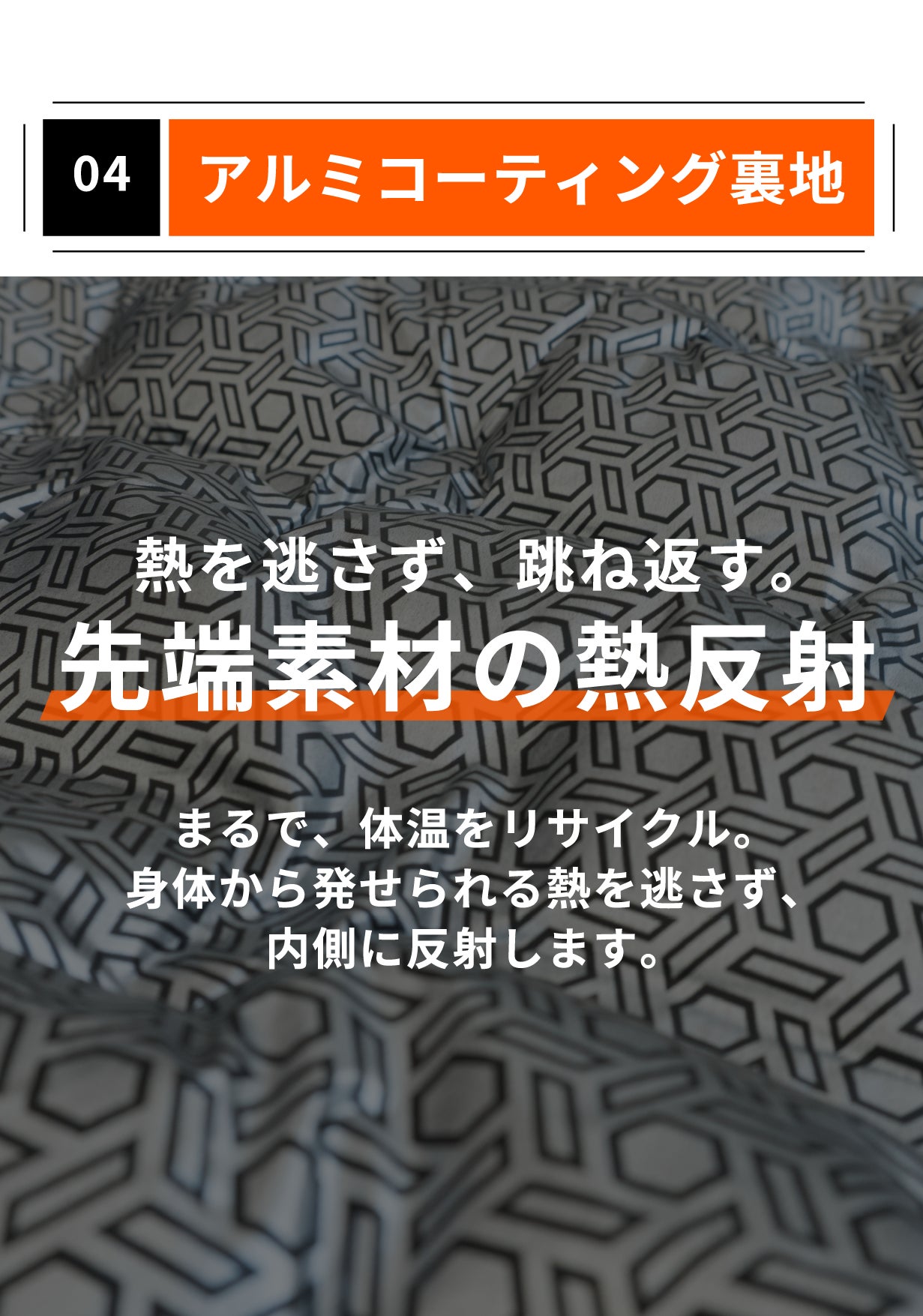 ノンキルトなので、外側から冷却スプレーをかけても、内側には冷気を通しにくいです。寒い冬の外気の侵入を防ぎます。