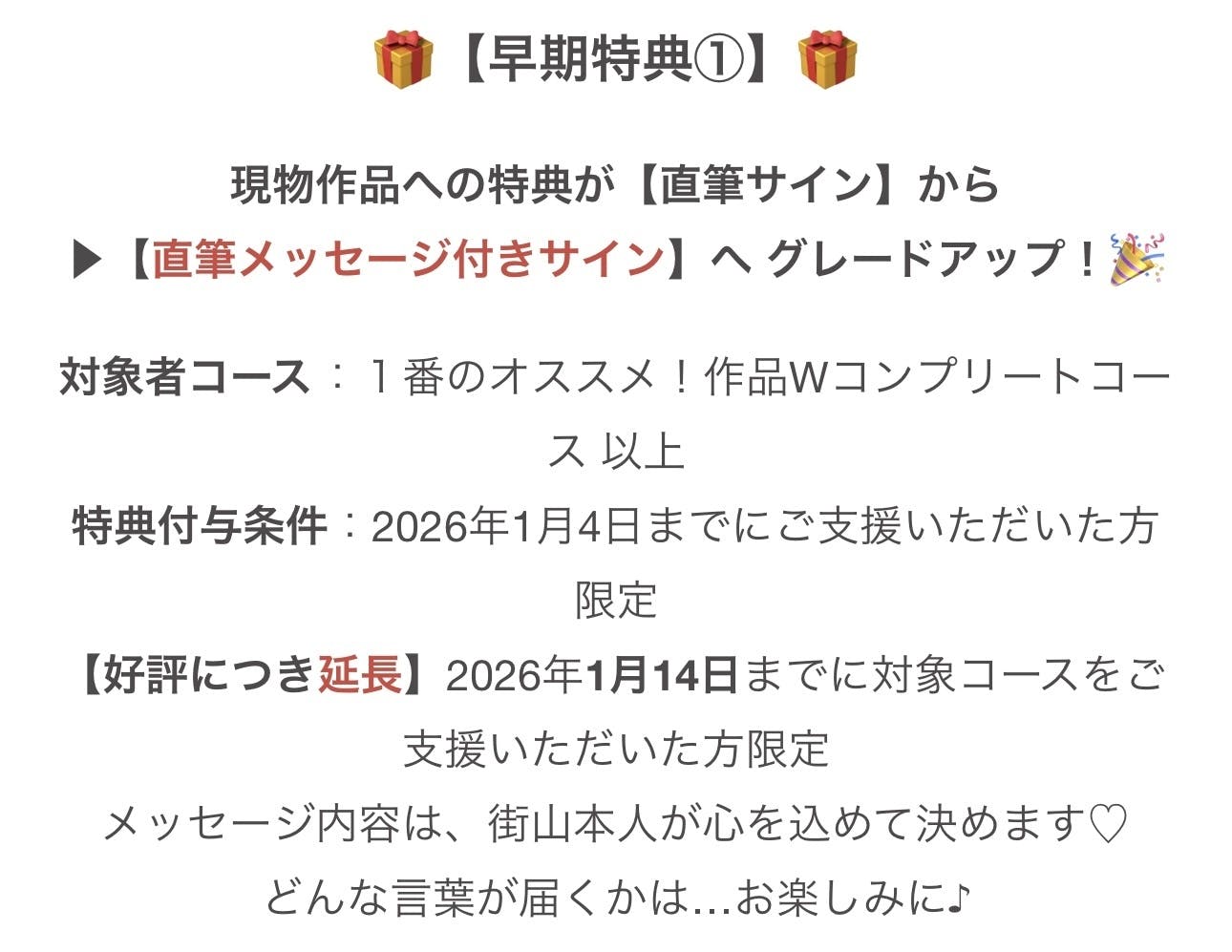 ・対象者:2026年1月7日までにご支援いただいた方(全コース対象)