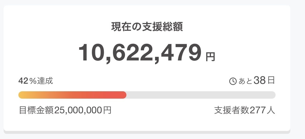おかげさまで、支援金額1,000万円を突破することができました。