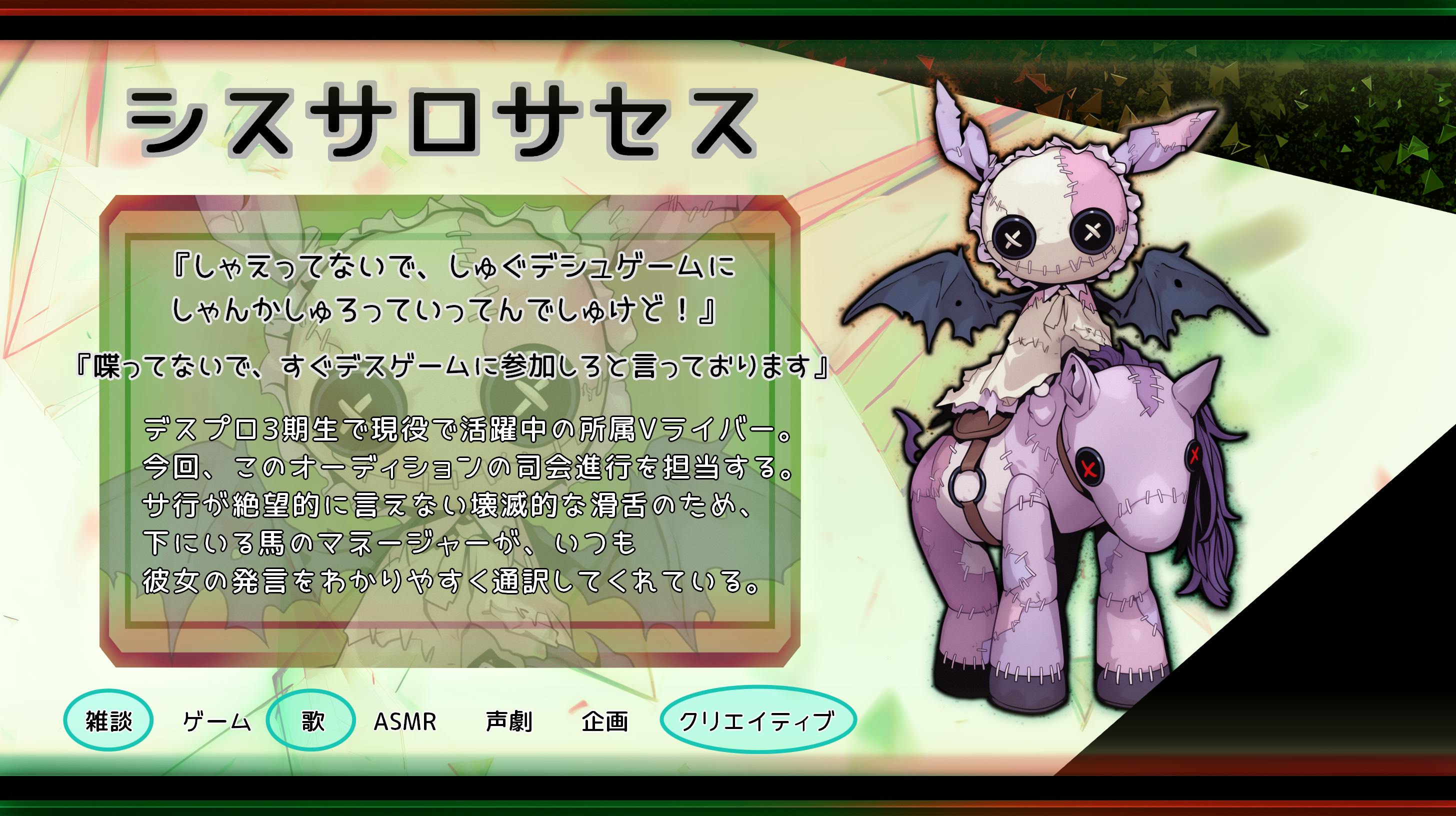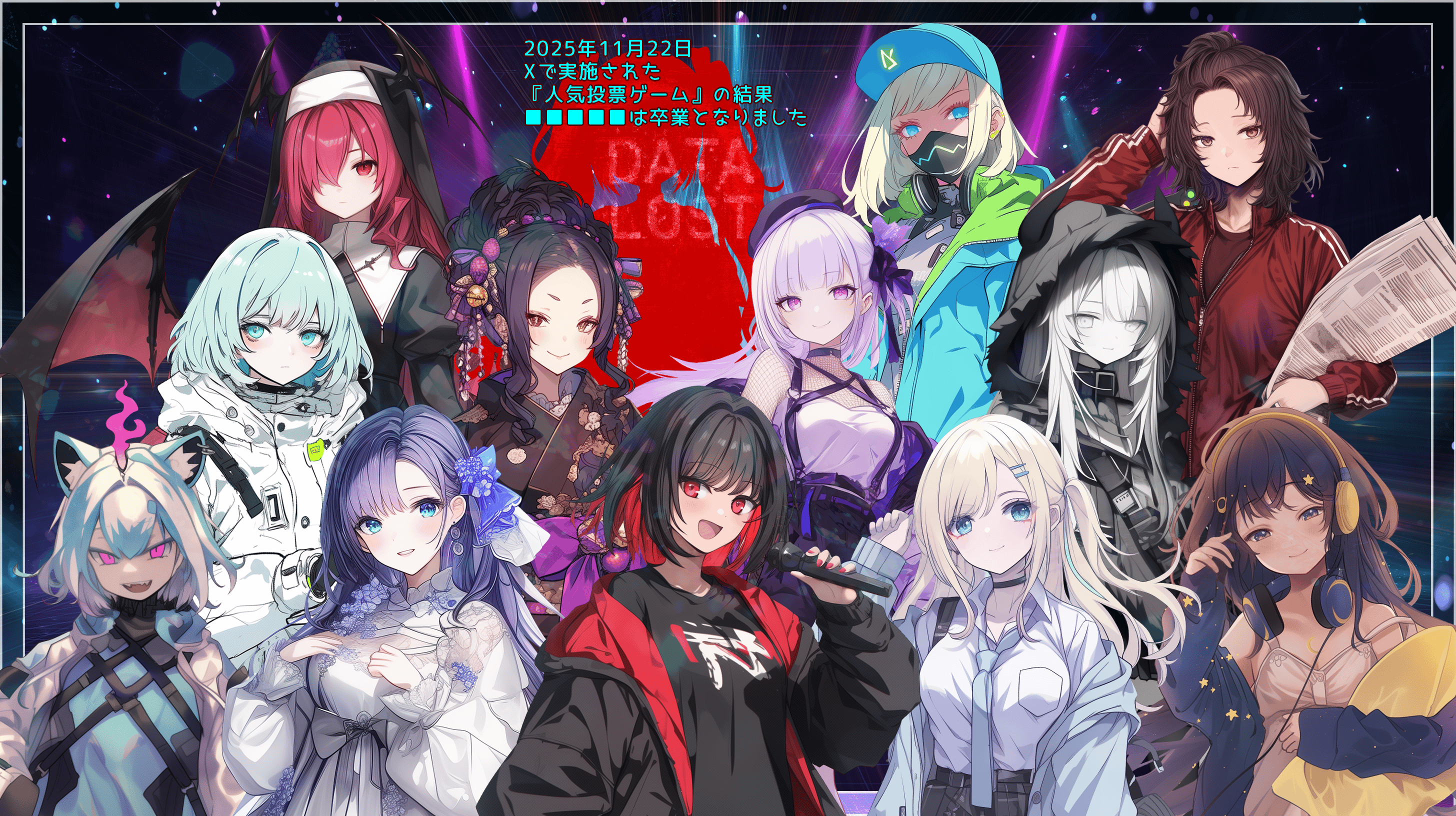 Xアカウント「Vデスゲーム公式(@V_DeathGame)」にて、キャラクターの「卒業」をかけた人気投票デスゲームを開催中です。