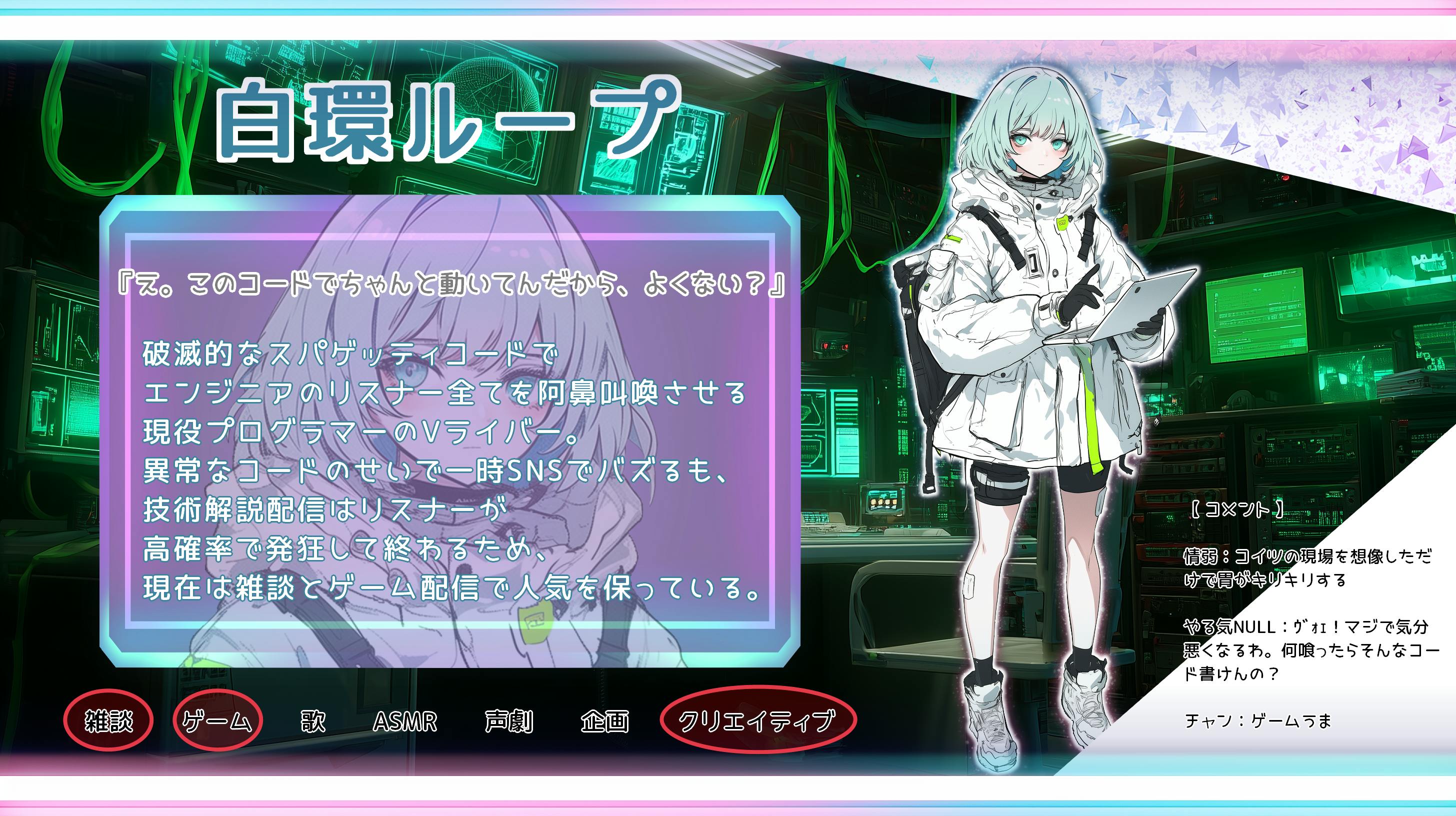 なお、彼女の詳細な設定や"配信ウラの顔"などは、削除前日に一度だけ一般公開されており、すでにご存じの方もいらっしゃるかもしれません。気になる方は、当時の痕跡をSNSなどで探してみるのも良いかもしれませんね。情報を集めることもマネージャーの大切な役目です。