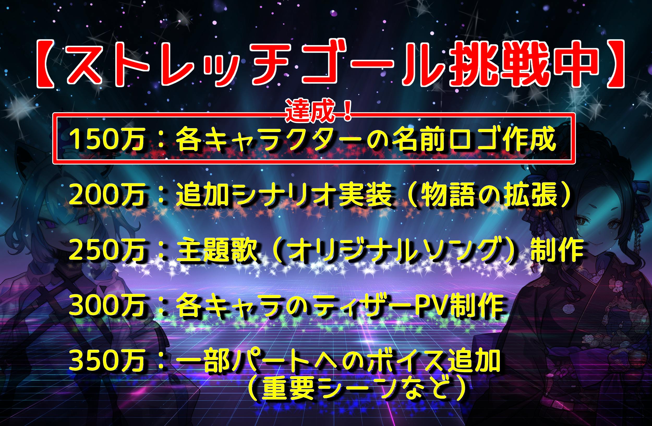 次のストレッチゴールは【2,000,000円】達成で「追加シナリオ実装(物語の拡張)」を行います。
