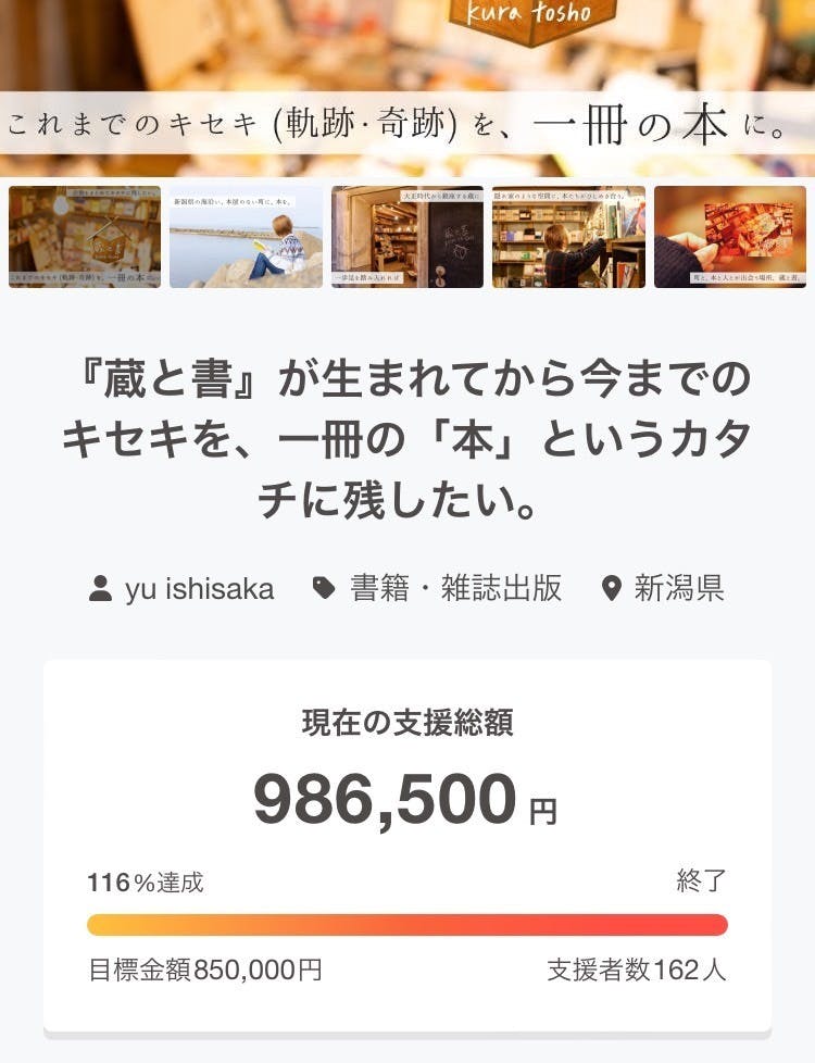 『蔵と書』時代にクラウドファンディングも経験していて、地域おこし協力隊を終えた今、サポーターに登録したそうです。