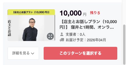 そして、恥ずかしいですが、【店主とお話しプラン(10,000円)】。