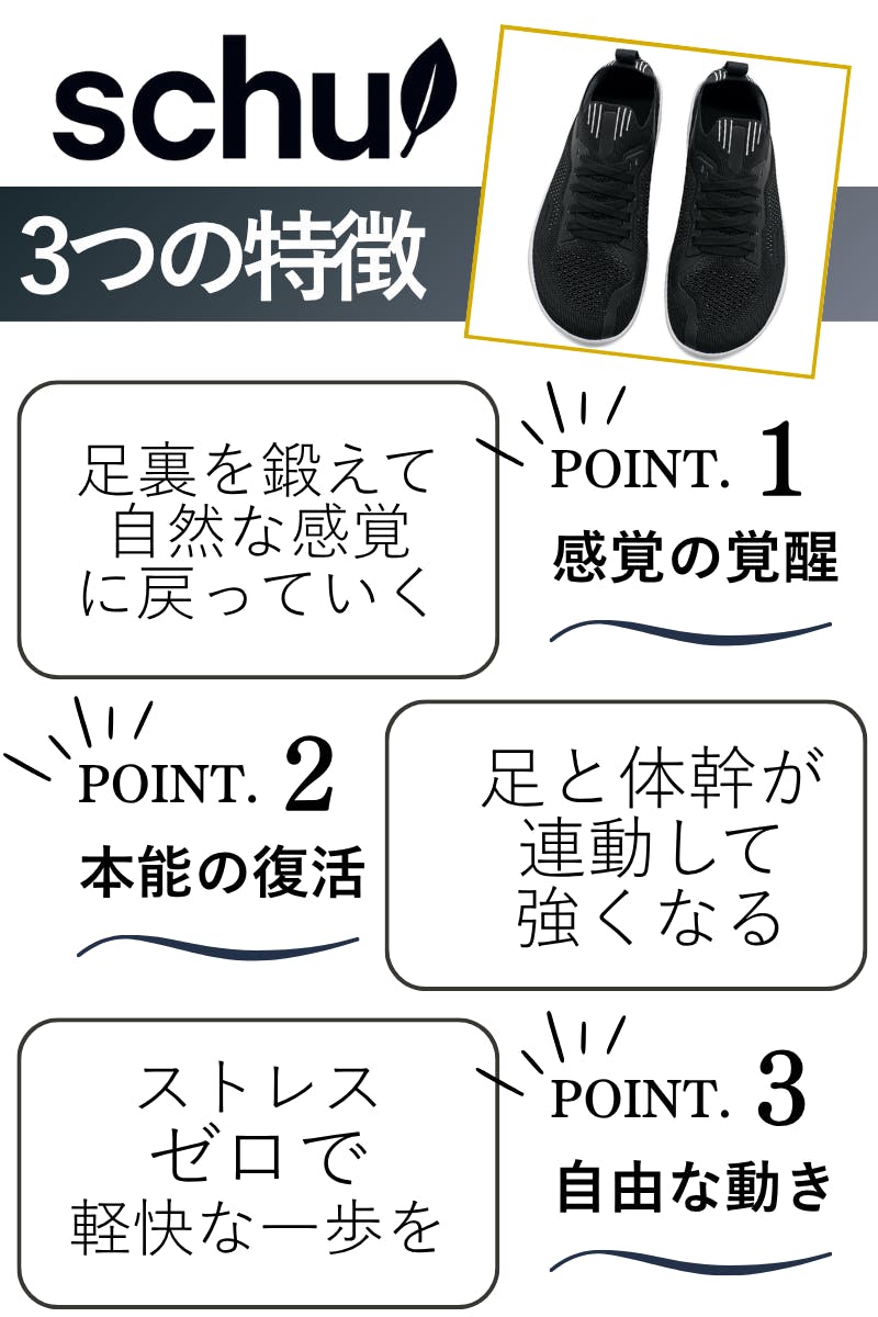足は“感じ”、脳は“最適化”します。Schuのゼロドロップ&フレックスは、感覚入力→脳内処理→運動出力のループを高速化。時間とともに、無理のないフォームへ神経系が自動調整します。
