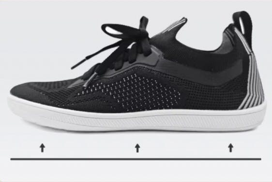 ベアフットシューズの**ゼロドロップ設計(かかととつま先の高低差0mm)**は、体を本来の重心位置に戻し、自然な直立姿勢を導きます。