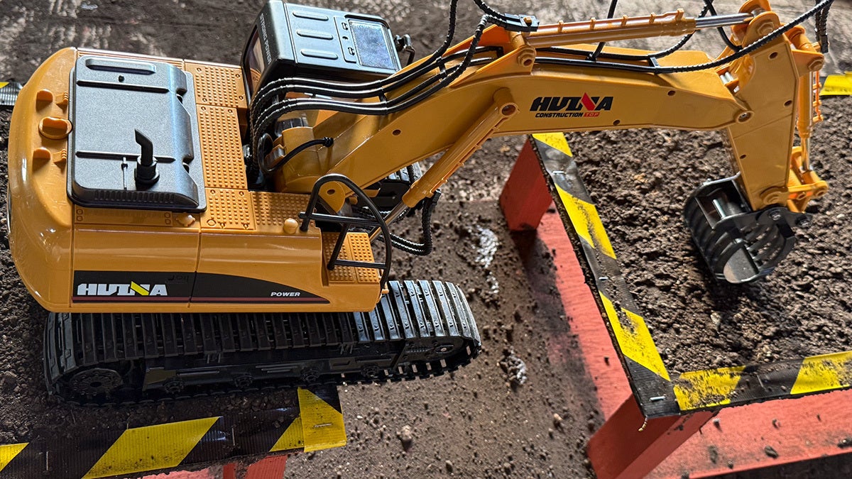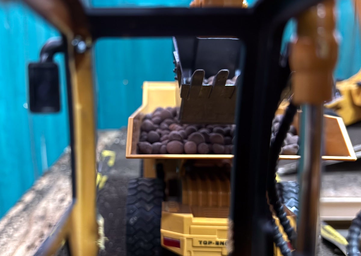 ○ 1/14スケールのミニチュア重機で1.7mx1.7mのフィールドは、実寸換算すると24mx24m!