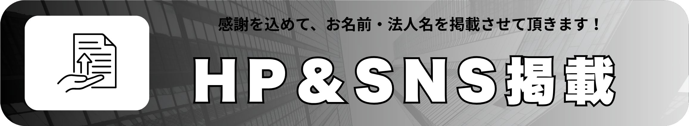 ご購入頂いたプランに応じて、弊社HPにて個人名/法人名を掲載させて頂きます。また、プランに応じて掲載した個人名/法人名を弊社のSNSにてご報告させて頂きます。