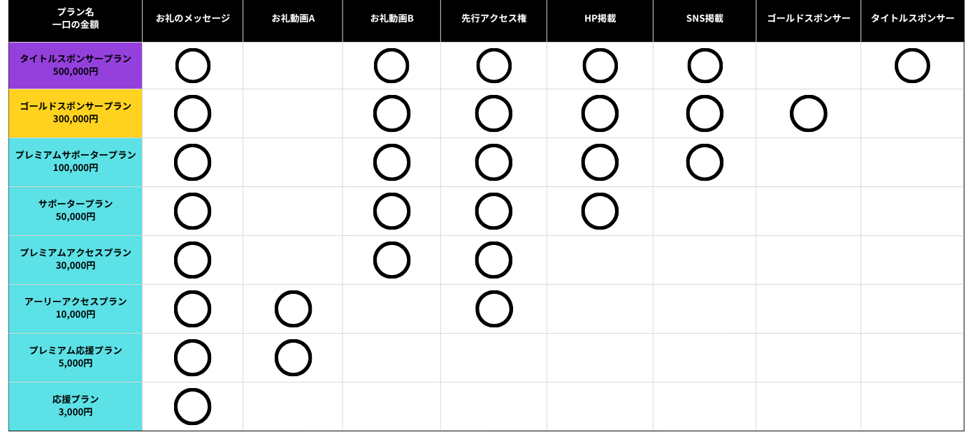 リターンのご紹介をします。下記のリターンを組み合わせてプランを作成しております。