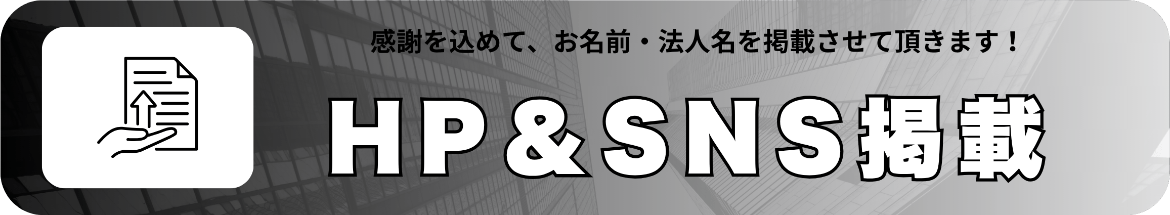 ご購入頂いたプランに応じて、弊社HPにて個人名/法人名を掲載させて頂きます。また、プランに応じて掲載した個人名/法人名を弊社のSNSにてご報告させて頂きます。