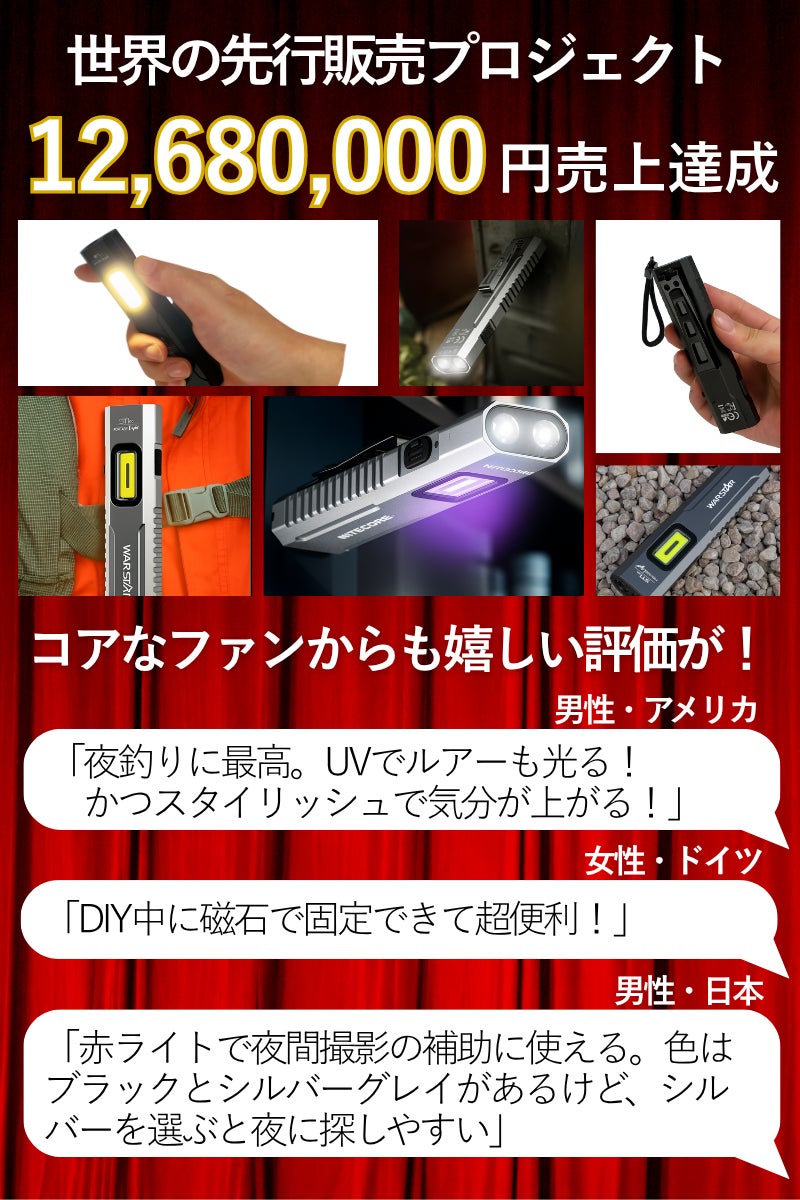 軽くてもパワフル。1800ルーメンの明るさと機能性を、わずか94gのボディに凝縮した、理想的なライトです。