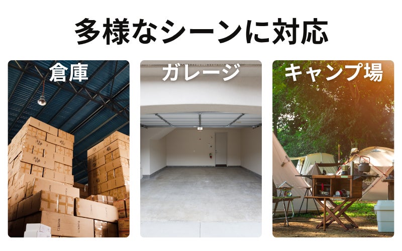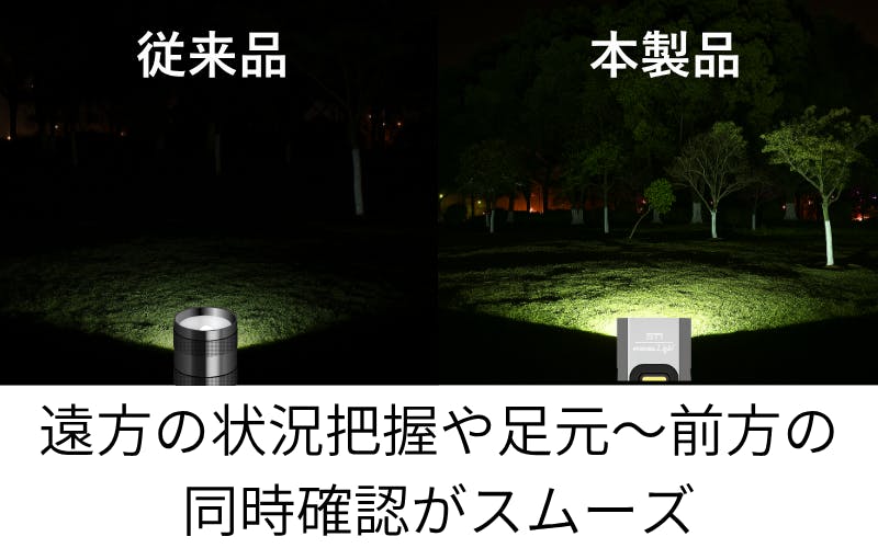 ▼一気に視界確保・・・倉庫・ガレージ・キャンプサイトなど広い範囲を瞬時に照らすパワー
