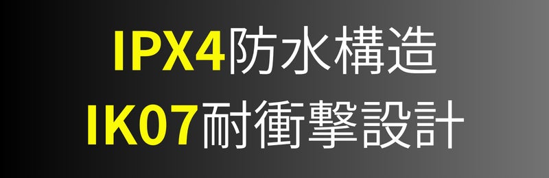 IPX4防水/IK07耐衝撃構造。突然の雨、落下、ホコリにも強く、アウトドアや災害時でも安心。アルミ合金ボディで軽くて丈夫、信頼の長寿命仕様(約50,000時間)。