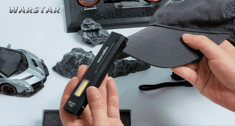 金属面に固定するだけでライトスタンド不要。車の整備、テント設営、机上作業などで両手が自由に。角度を変えれば真上・斜め方向も自在に照らせます。