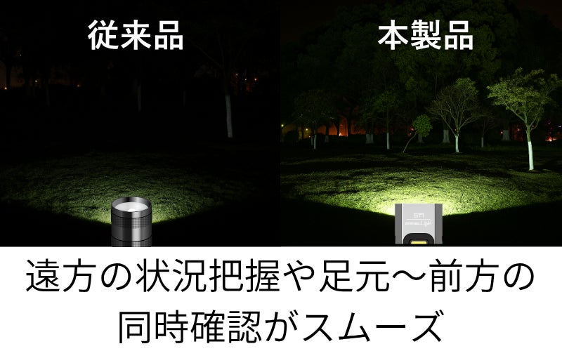 ▼一気に視界確保・・・倉庫・ガレージ・キャンプサイトなど広い範囲を瞬時に照らすパワー