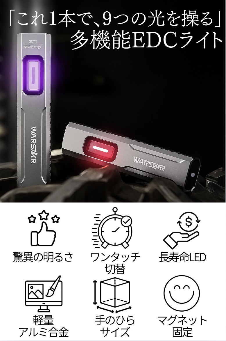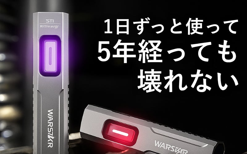 1本でUV(365nm)・赤色・白色(ウォーム含む)の3種を網羅。サイドライトのUVライトは油汚れ・リーク・蛍光マーキング・紙幣のセキュリティチェックなど“見えない情報”をあぶり出し、赤色ライトは暗順応(夜目)を保ちながら手元作業や地図確認に最適。メインの**白色(トップライト)**は広範囲を明るくクリアに照らし、屋外の移動から整備・DIYまでオールラウンドに活躍します。