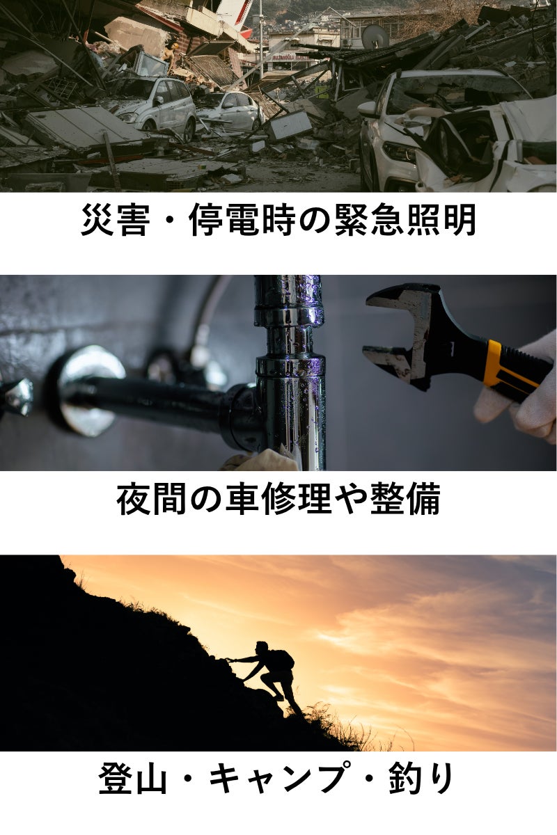 ▼日常〜緊急時まで・・・停電、車のトラブル、夜間の設営・撤収にも頼れる光量