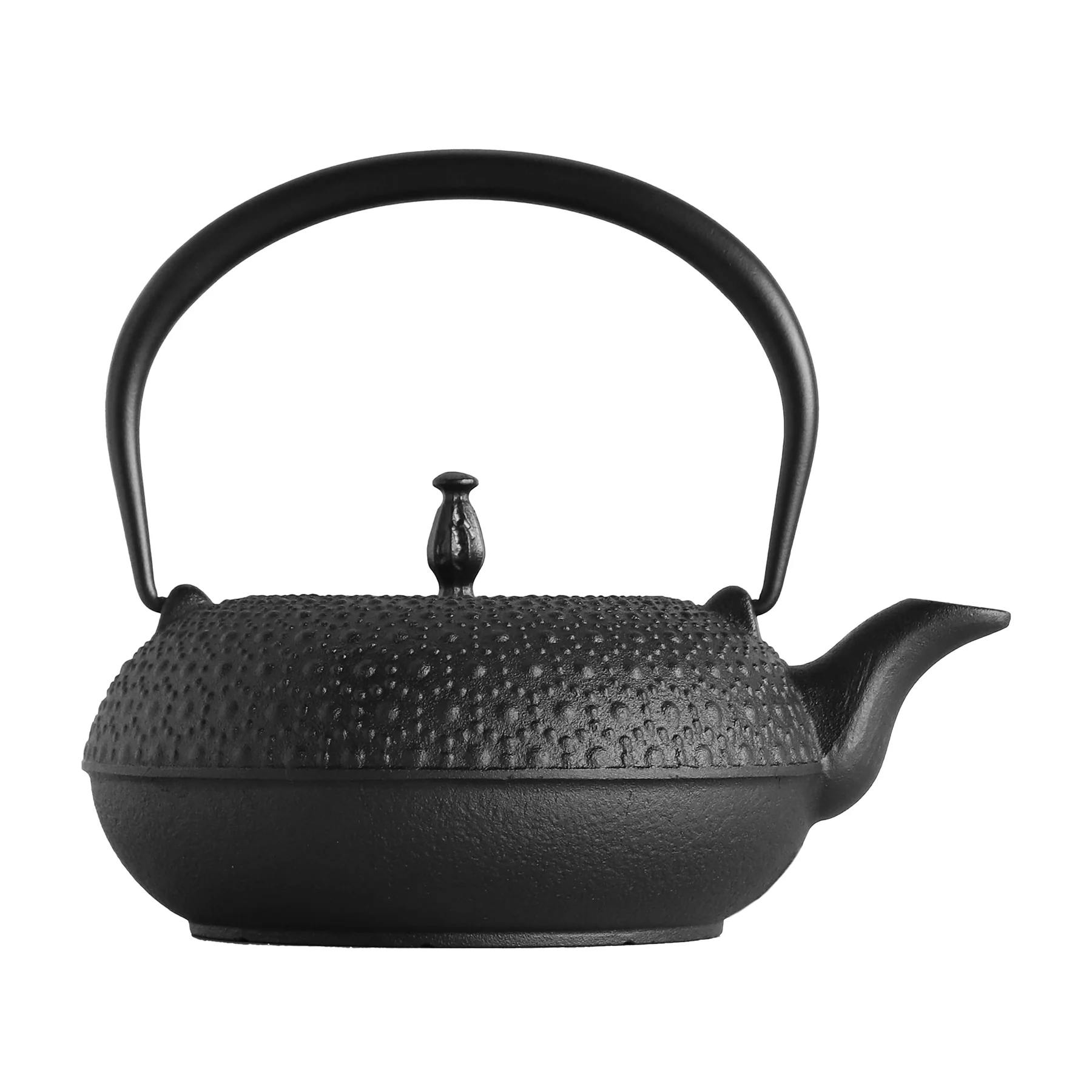 1Lサイズの直火及びIH調理器対応の鉄瓶です。「東雲」は少し平らな形状なので、丸い鉄瓶に比べると軽く傾けるだけでスムーズにお湯が出せます。IH調理器の強いパワーを受けてもビクともしない底面設計で安心してお使いいただける鉄瓶です。
