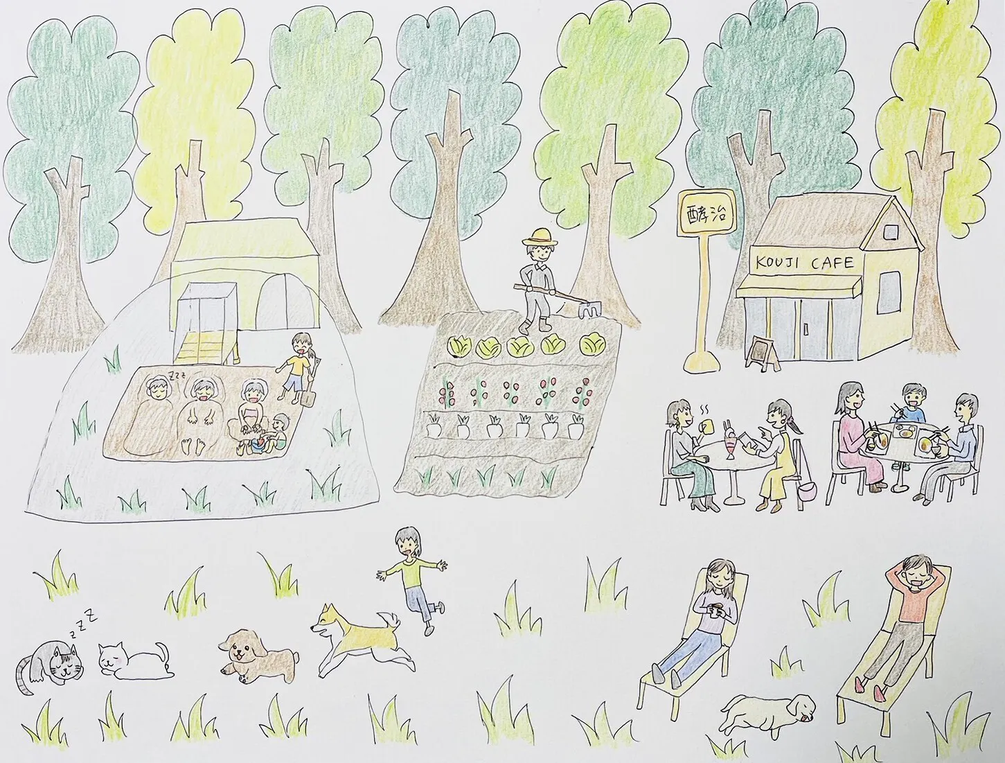 「たくさんの方が訪れ、自然と一体になれる場所になるように」という夢を込めて描いています。