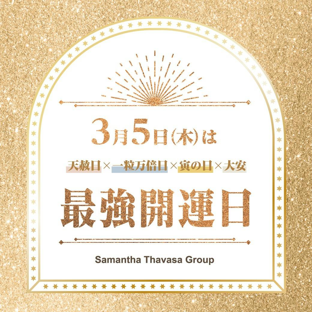 本日、2026年3月5日は、「一粒万倍日」「天赦日」「寅の日」そして「大安」の4つの吉日が