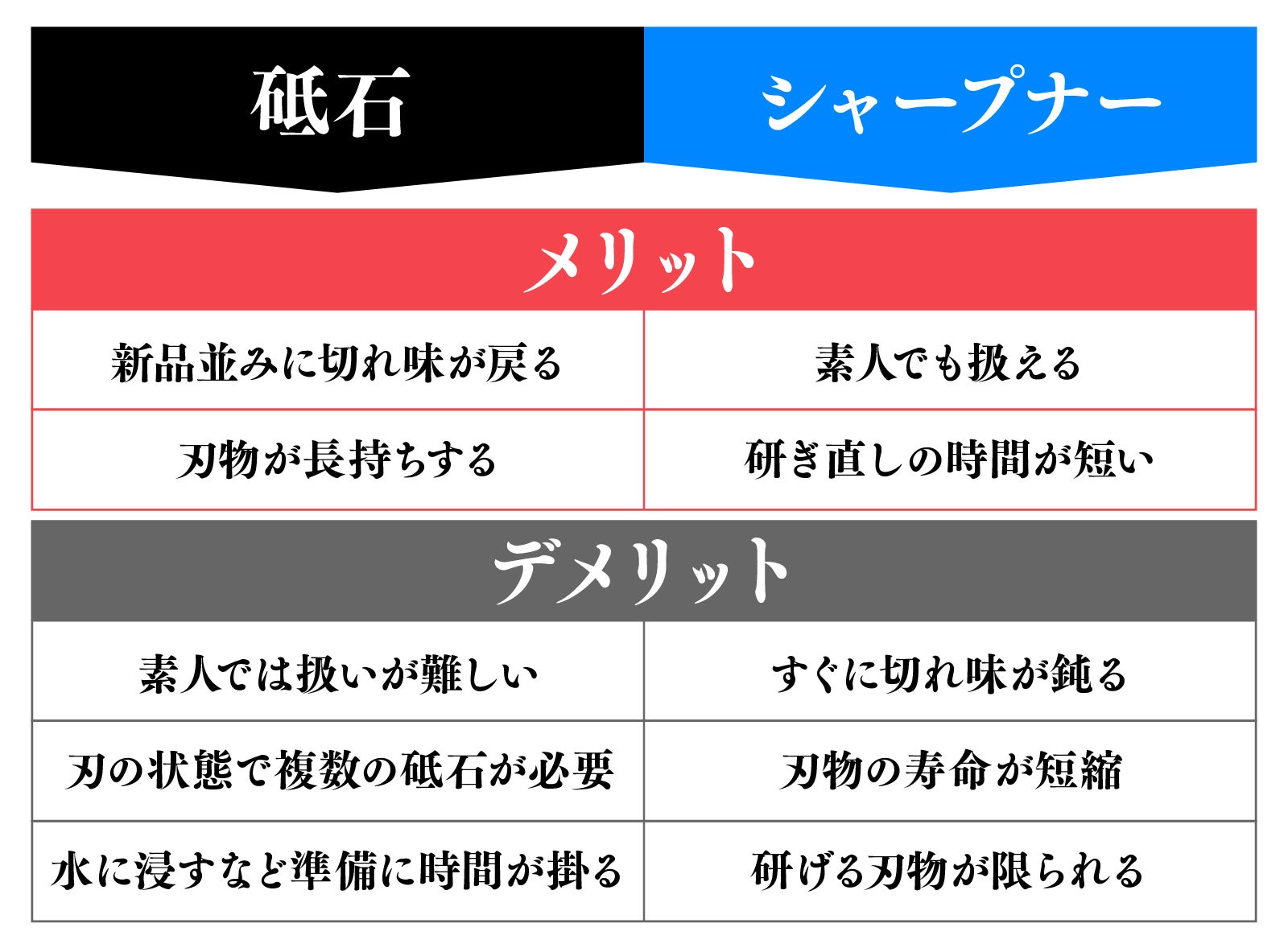 またシャープナーは砥石で研ぐ時に比べ、製品によっては刃への負担が大きい場合もあります。