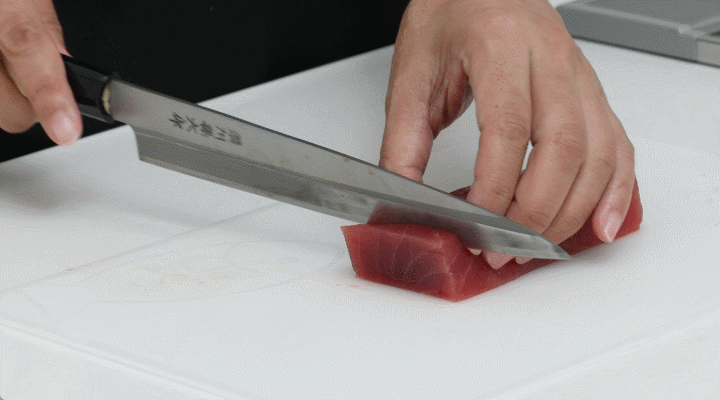 刃物の切れ味で味が左右するお刺身も、【TOGIMEISTER 刃之匠】で研ぎ直した包丁ならこんなにキレイに。