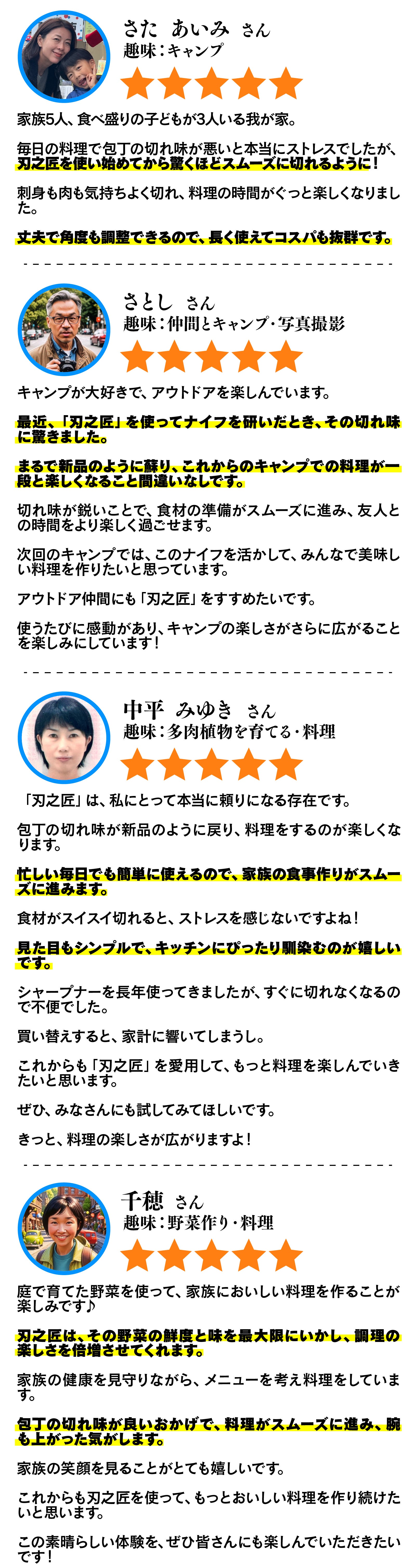 いつもシャープナーを使っていて切れ味がすぐに鈍ってお困りの方にも、驚いて頂けると思います。