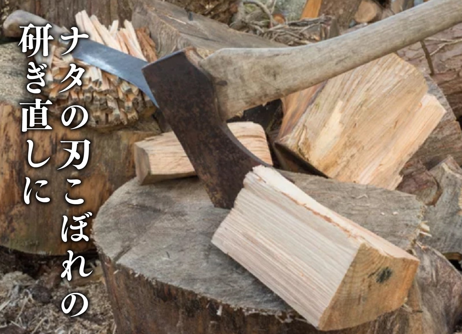 ナタのように硬いものを叩き切る刃物は30°の角度で研ぎ直し。