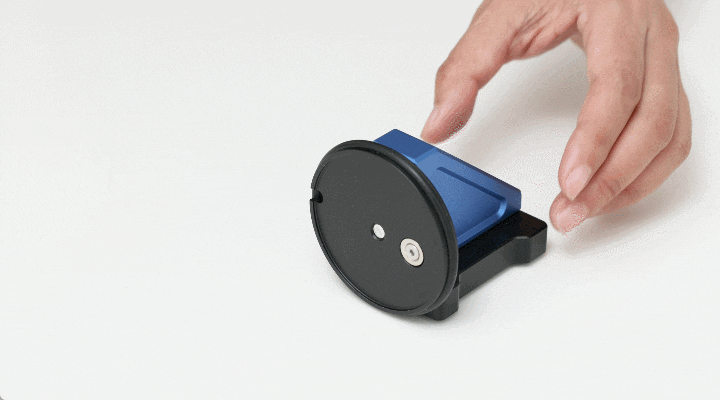 【TOGIMEISTER 刃之匠】は磁石が付いたガイドに包丁をセットし、砥石のプレートが付いたローリングホーンを刃物に充てて転がすだけで、プロが研いだような研ぎ直しができます。