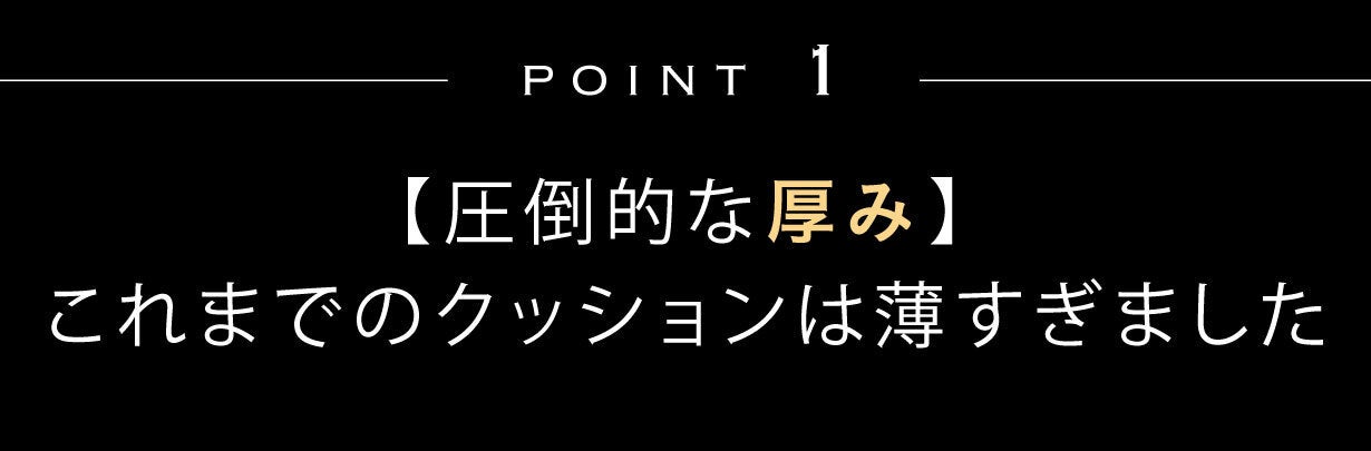 試行錯誤の末、厚さ4.5cm(従来比1.8倍)の3Dファイバー素材を採用しながらも、男女問わず快適に使えるギリギリの厚さに仕上げた超極厚クッションが完成しました。